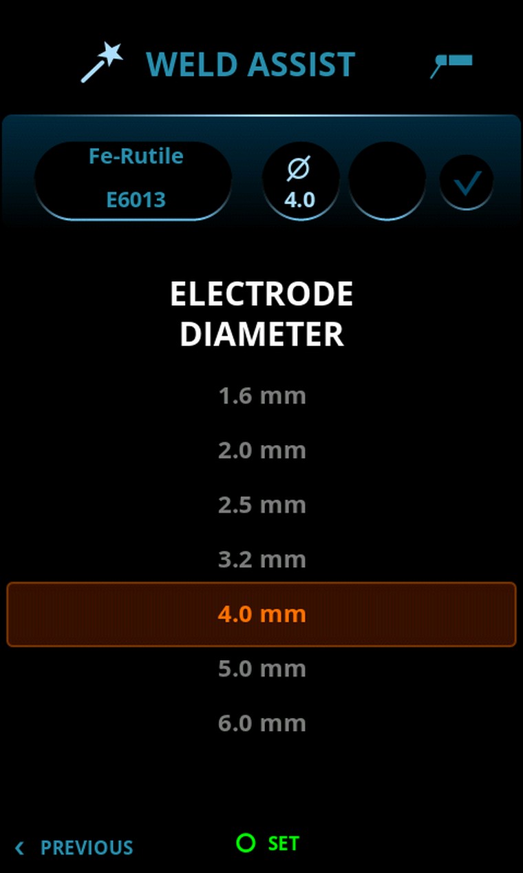 Die Master 315 garantiert optimale Schweißleistung und eine schnelle Parametereinstellung, die durch das innovative Weld Assist Auswahltool unterstützt wird. Weld Assist gewährleistet, dass unabhängig von Ihrer Schweißerfahrung geeignete Parameter für jede Anwendung eingestellt werden. Wählen Sie Elektrodentyp, Elektrodengröße und Fugenart aus, und Weld Assist nimmt die perfekte Einstellung für Sie vor.