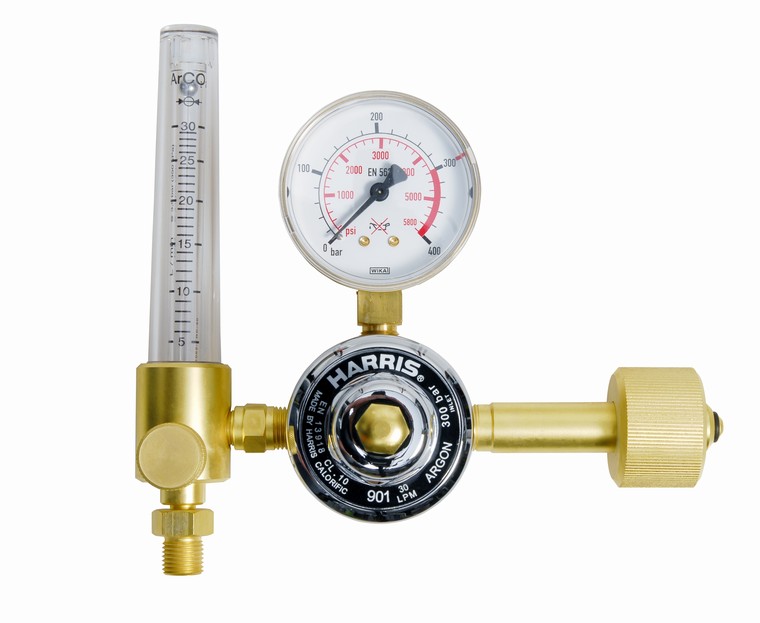 Flaschendruckminderer mit Flowmeter für Argon/CO2, max. Vordruck 230 bar Messbereich 0-30 l/min Flaschenanschluss: W21,80 x 1/14 RH   (195234)