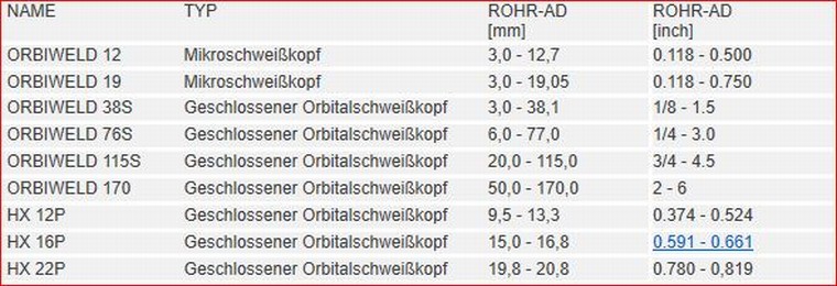 • 1 Orbitalschweißkopf OW 38S, OW 76S oder OW 115S